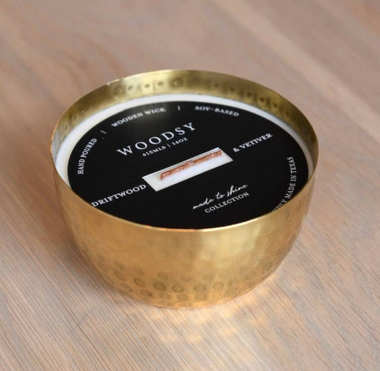 Cashmere Vanilla & Warm Amber-Solid Brass 14oz Pure Soy Candle