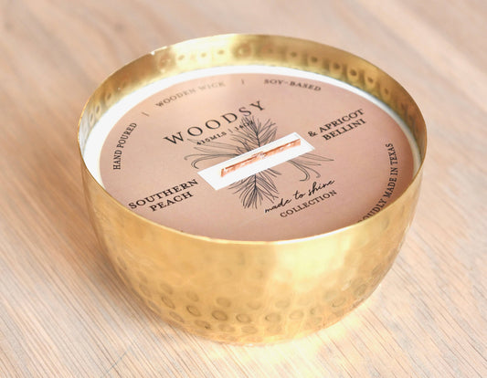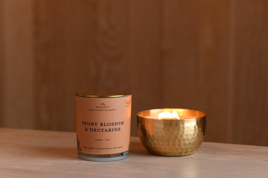 Peony Blossoms & Nectarine-Solid Brass 14oz Pure Soy Candle