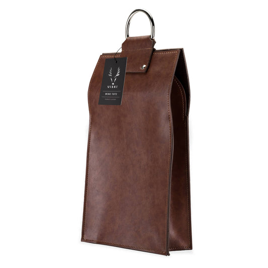 Faux Leather Double Bottle Brown Wine Tote