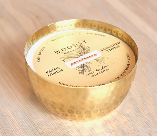 Fresh Lemon & Crushed Thyme-Solid Brass 14oz Pure Soy Candle