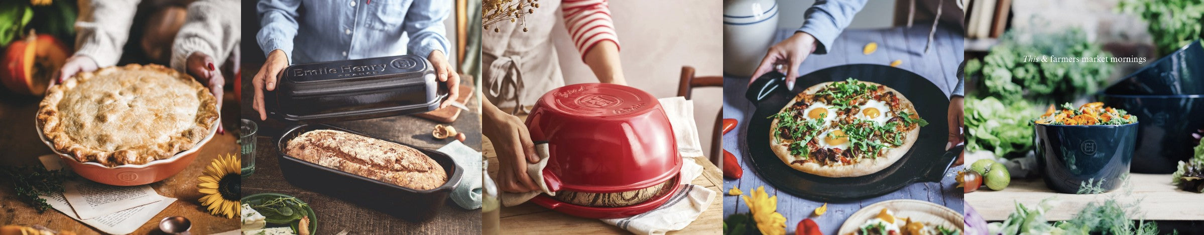 Worldwide, professional chefs and home cooks appreciate Emile Henry for the many products and shapes that are properly designed for cooking and baking. The products have the right dimensions, the correct depth and the special features that make Emile Henry products so desirable for everyone that enjoys cooking and eating great foods. We offer cookware products such as baking dishes and pizza stones, and the discerning gourmand will recognize the quality in every loaf pan, casserole dish, stew pot, handcrafted pie dish, tagine, and brazier we create.