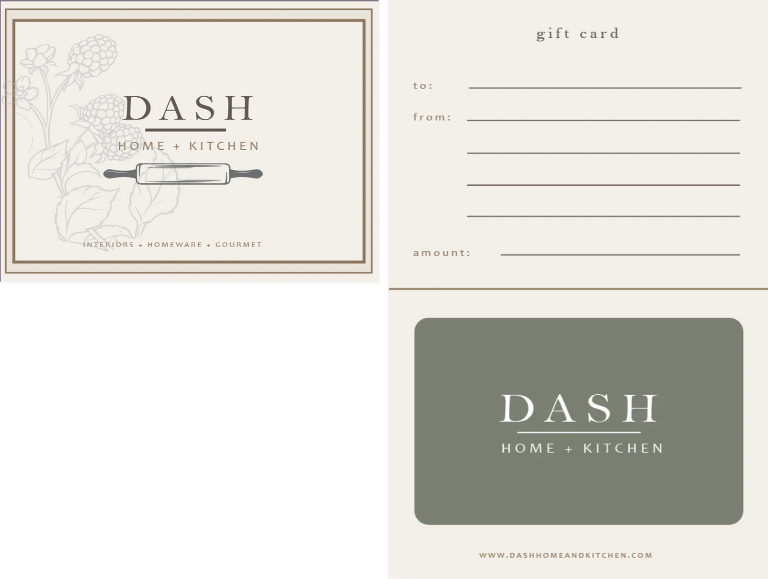 Give the gift of choice with a DASH Home + Kitchen online gift card. Its a everyday solution celebrations and gifting. From stylish home décor and premier kitchen essentials to unique gifts, our digital gift cards make it easy for anyone to find exactly what they love. Instantly delivered by email, our e-gift cards are convenient and always the right size. Available in a range of denominations, DASH gift cards take the guesswork out of gifting and its sure to be appreciated.