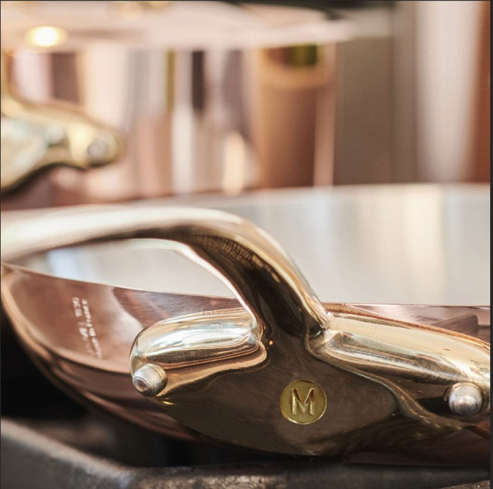 Polished copper associated to stainless steel, enhances the pleasure to cook. The collection is defined in two thicknesses, according to the user expertise: a thickness of 1.5 mm for a standard use from the range M’HERITAGE 150.
