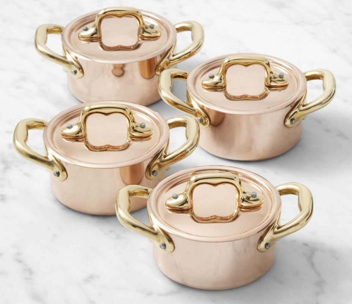 SHOP M'MinisElegant copper-and-stainless-steel pans designed for sauces, appetizers, side dishes, desserts, and other finishing touches.