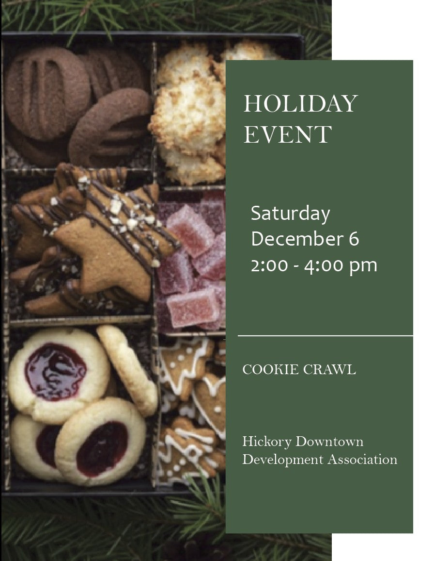 We are one stop on the Annual Downtown Cookie Crawl. Your pre-purchased ticket and map gets you a cookie from each of the participating downtown business. We will have a special gift for you! Check the Hickory Downtown Development Association’s website for additional details.
