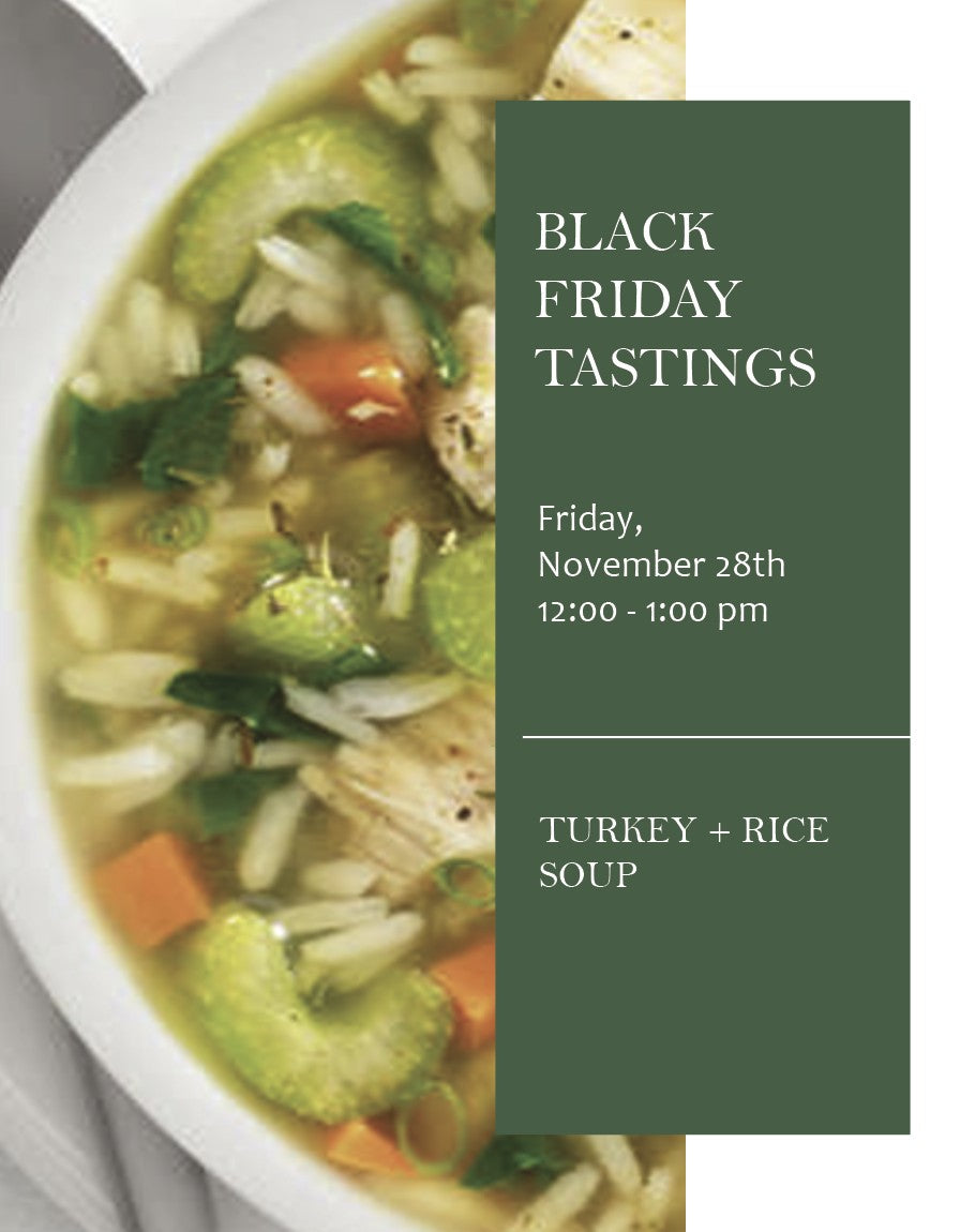 If you have left-over turkey you may want to try our Turkey and Rice soup tasting at 12:00. Holly will be in the kitchen stewing up our “Kentucky Homestead Chicken and Rice Soup ”from Frontier Soups. Just substitute the chicken for the turkey.