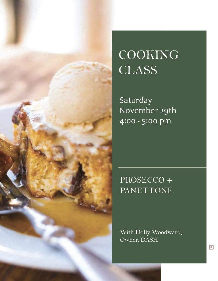 Be sure to see Holly from 4:00-5:00 in our Hoodsly Demo Kitchen for the “Prosecco and Panettone” class.