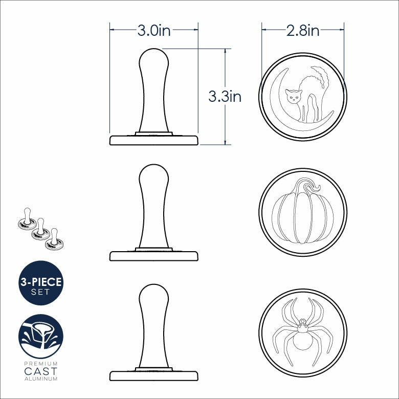 Get into the Halloween spirit with the Nordic Ware Halloween Cookie Stamps. These silver stamps with orange wooden handles are a fun and festive way to add some spooky flair to your baking. The set includes three unique designs: a spider, a pumpkin, and a cat. Press the stamp into your cookie dough before baking to create imprints that will make your treats stand out!