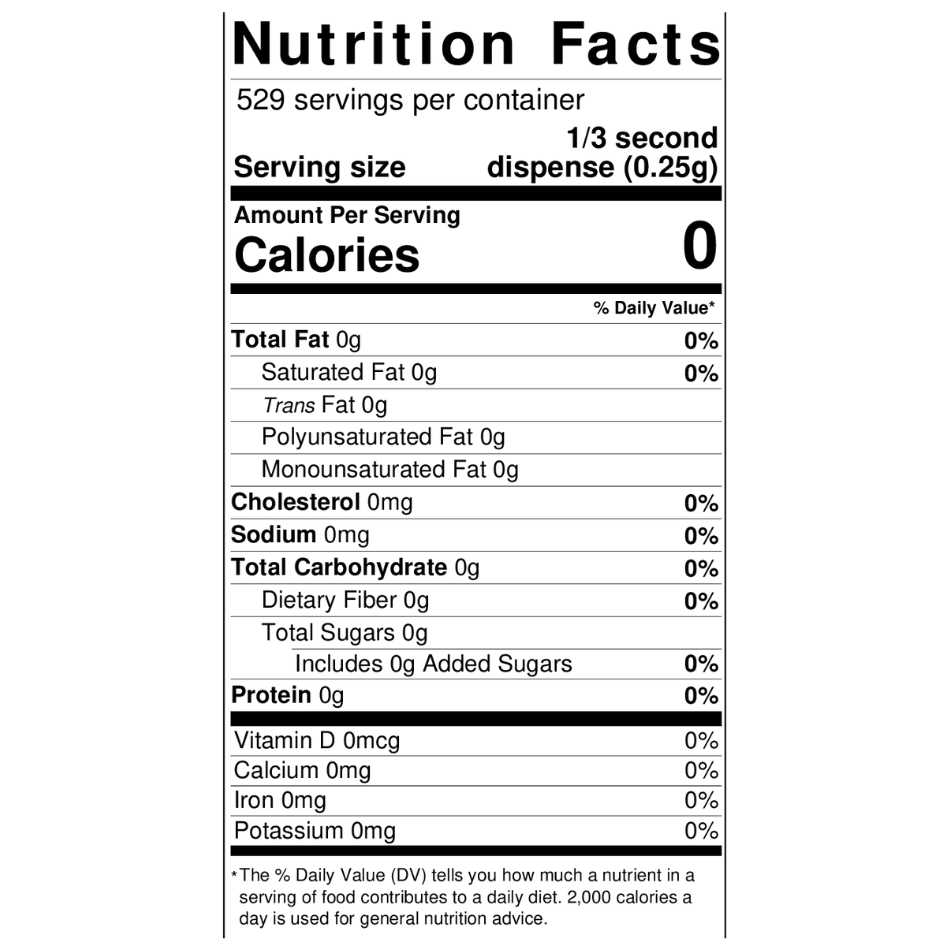 Our spray oils are 100% pure oil, non aerosol with no propellants or chemical additives. Our spray can utilize a BPA-free bag with just canola oil and lecithin, surrounded by compressed air to deliver clean ingredients without harm to the environment.