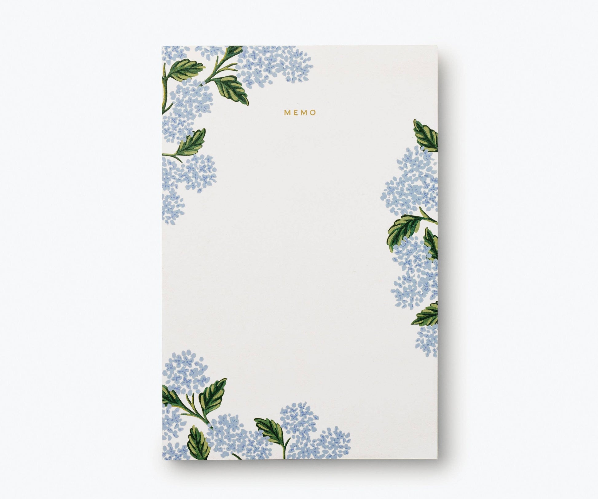 Graceful, blooming hydrangeas decorate this oversized notepad, which features 65 tear-off sheets and gold foil on every page. DETAILS - 9" L × 6" W - Warm white text paper - Printed in full color and foil stamped.