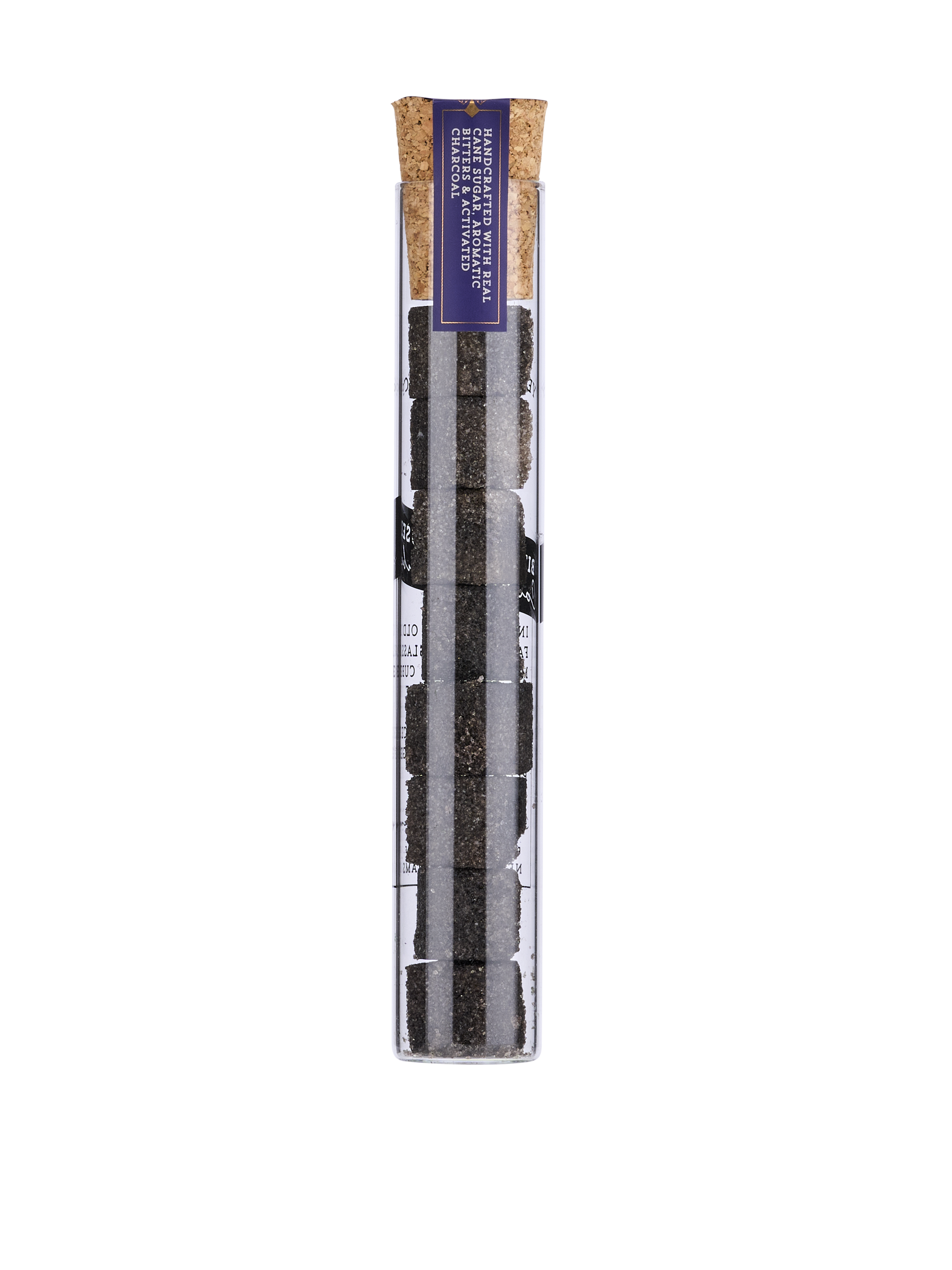 We took our classic Old Fashioned Cube and gave it a dark twist—infused with activated charcoal for that perfect Halloween-worthy, inky black look.