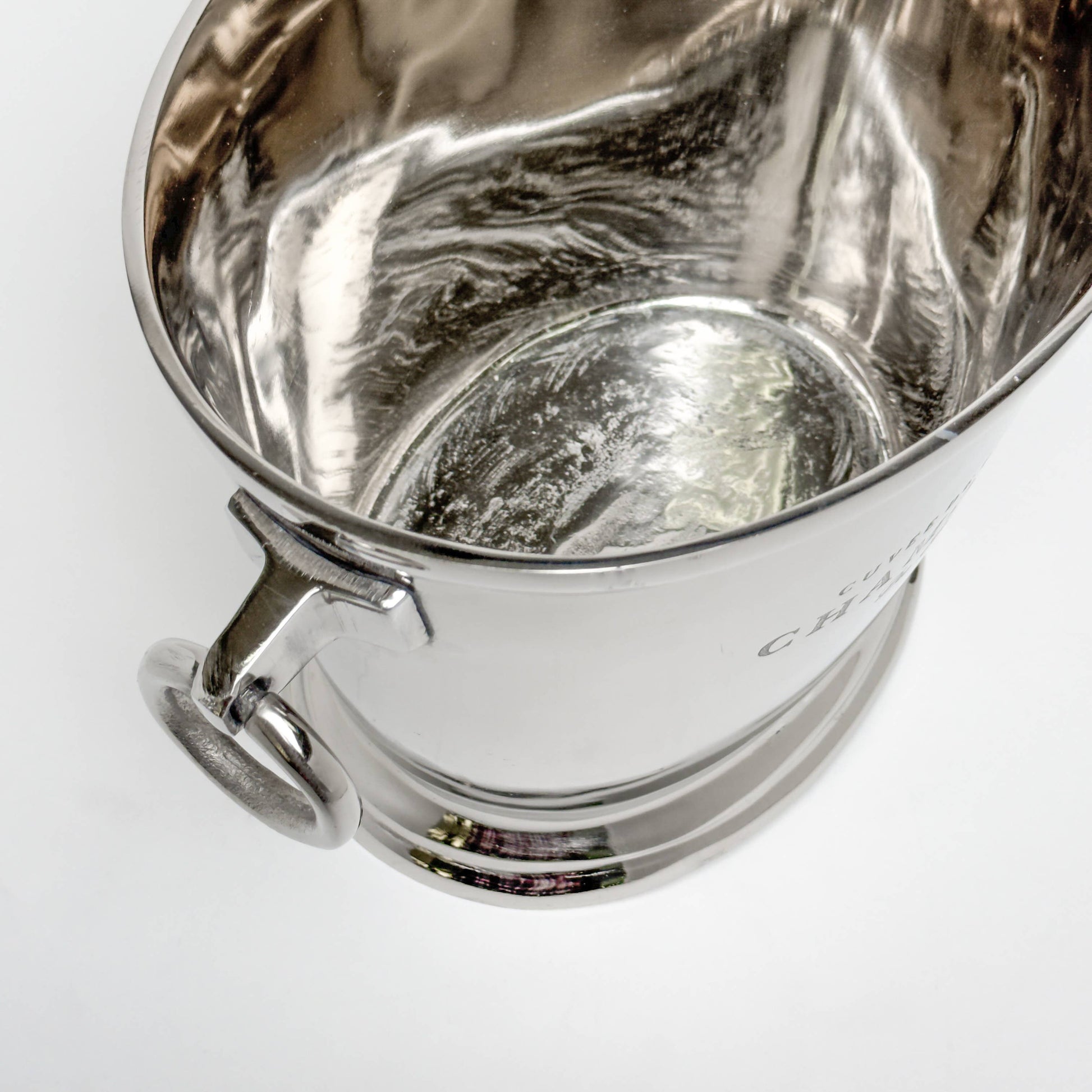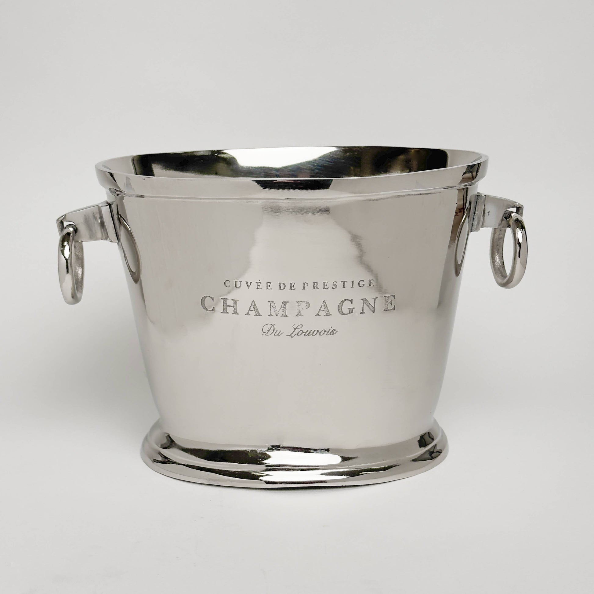 The Aluminum Champagne Bucket is a stylish and functional addition to any party or event. Made from high-quality aluminum, this bucket is designed to keep your champagne or wine chilled for hours. With a capacity to hold 2 bottles, it is perfect for intimate gatherings or small celebrations. The sleek and modern design adds a touch of elegance to any setting, while the sturdy handles make it easy to carry and transport. Whether you are hosting a dinner party or enjoying a romantic evening, the Alum Champagne Bucket is a must-have accessory for any wine lover.