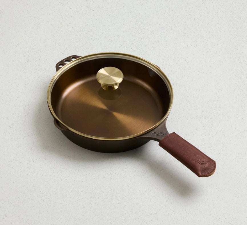 This new set of essentials from Smithey has everything you need to get started on your cast iron cooking journey. We've included our most iconic No. 10 Cast Iron Skillet, which we find to be perfect for 1 to 2 people, as well as a custom-fit glass lid and a full-grain leather sleeve. Set yourself (or them) up with one of our core cast iron skillets and our most versatile and functional accessories.